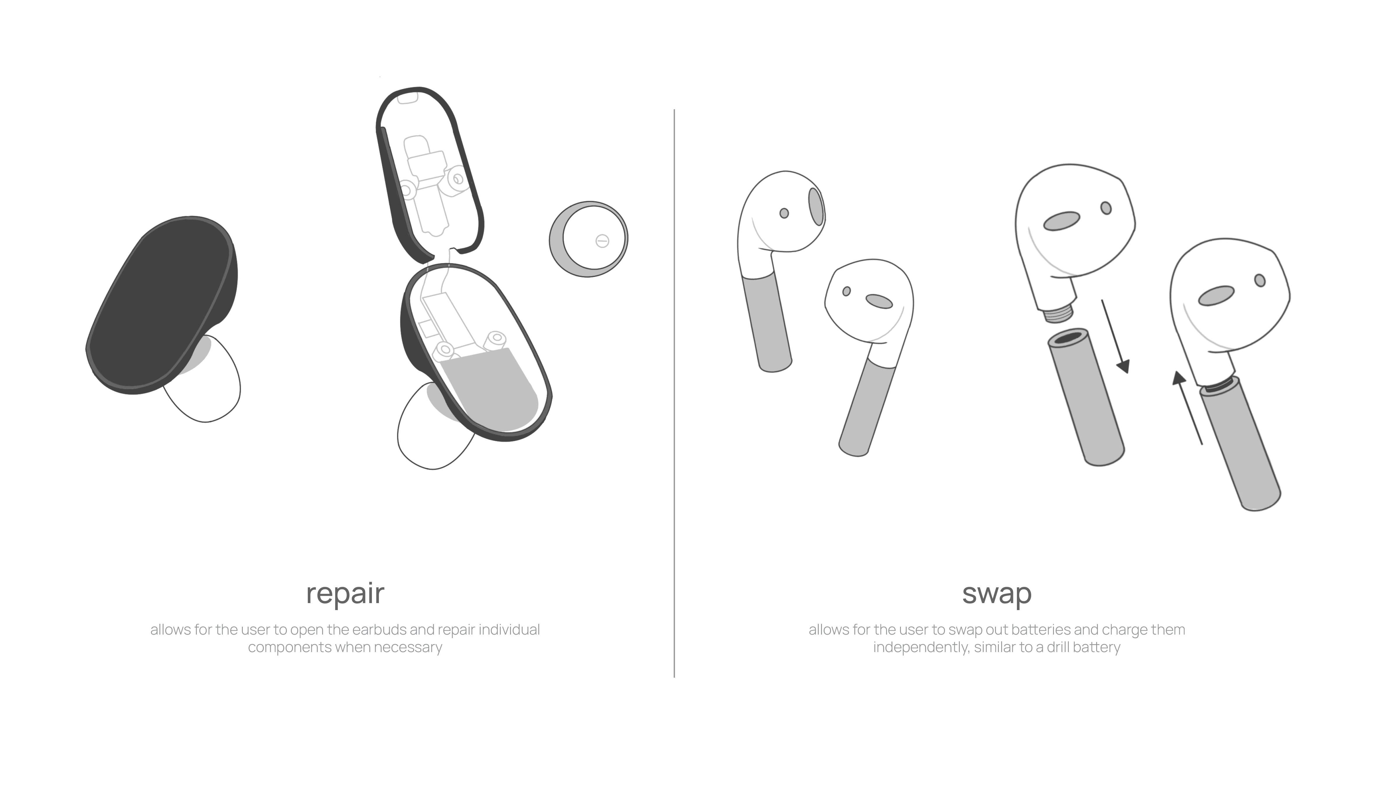 How might we design wireless earbuds that prioritize repairability and sustainability, enabling longer lifespans, reducing electronic waste,